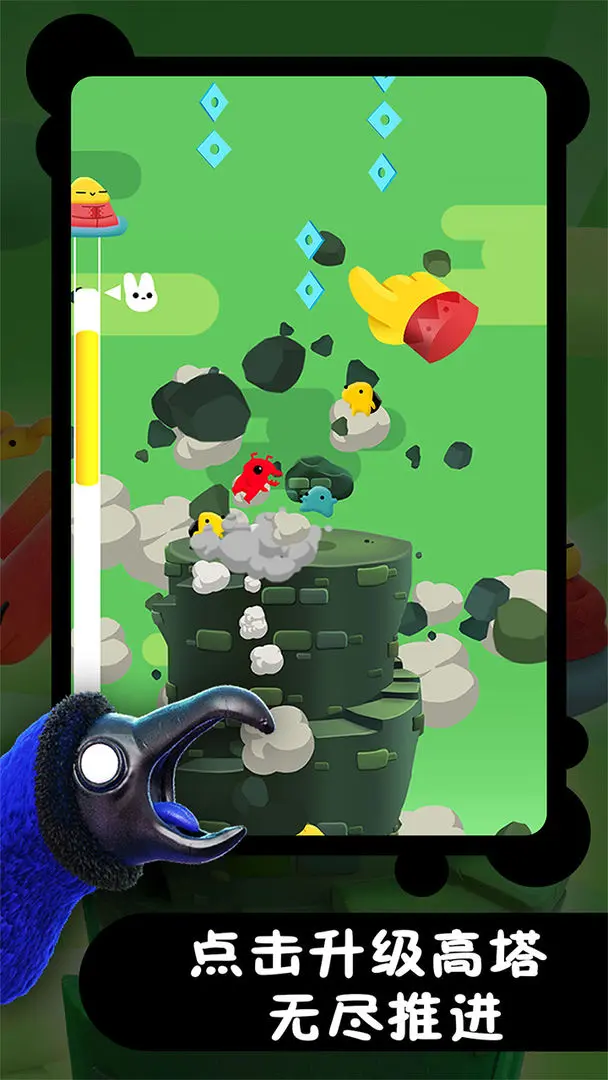 2、快速点击屏幕,高塔就能飞速攀升啦!持续升级高塔,不断侵蚀敌人空间!