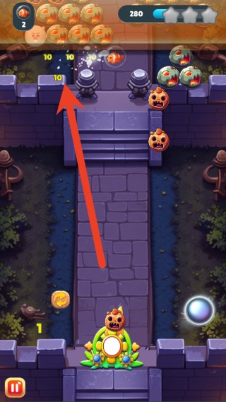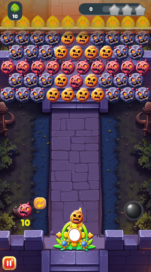 1、拖动瞄准,松手发射泡泡,连接同色泡泡(3+个)进行消除,攻击下方僵尸。