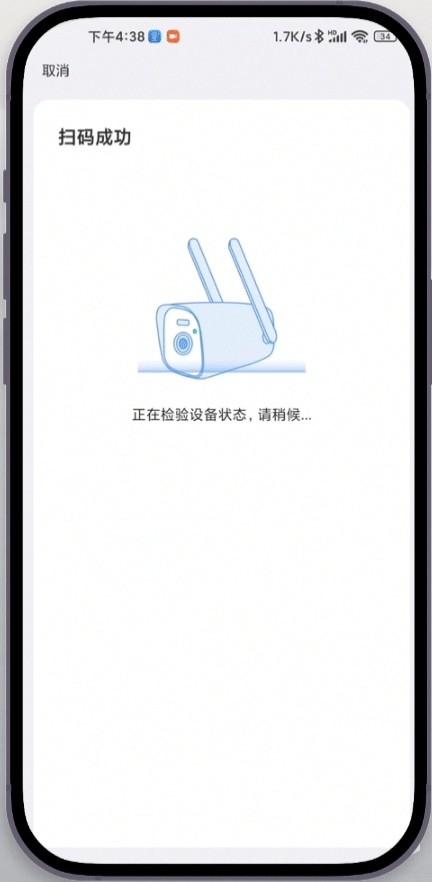2、将摄像机通电,等待指示灯长亮后点击“添加摄像机”,然后扫描摄像机身上的二维码。