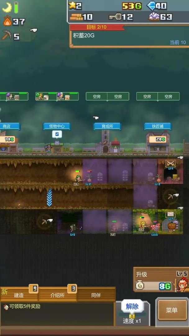 3、动态事件触发:随机遭遇盗贼团伙的攻击、邻近商家的交易或向神秘NPC寻求帮助,影响洞穴的发展轨迹。