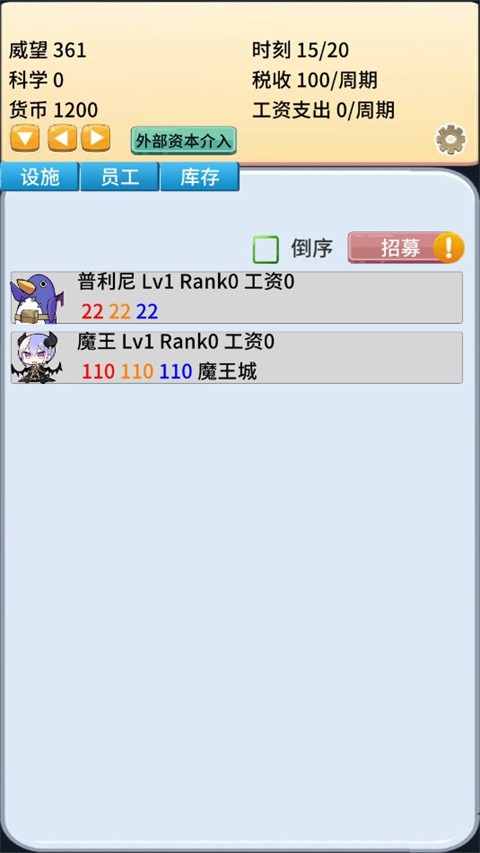 去魔王城上班是一款采用文字形式呈现的模拟经营游戏,具有多种不同的玩法内容可以选择,玩家可以在这里快速进行养成的操作,逐步发展自己的魔王城,扩大整体的范围。游戏中的内容非常丰富,为你构建了比较独特的异世界场景,还有不同的科技可以发展,随着游戏的进行可以招募更多的恶魔帮助你进行办公,多种不同的资源可以获取到,还有强大的魔法可以进行学习,具有独特的能力可以获取到。