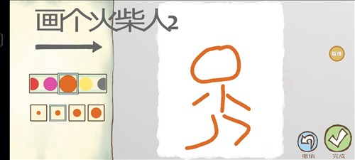 1、首先,玩家在本站下载并安装好游戏之后,打开进入,需要现在右边的画板中画一个火柴人;画完之后,点击右下角的【√】;