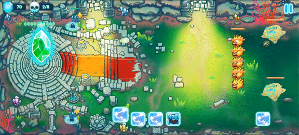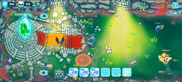 小兵出现就直接放地上,束缚随机应变,最好是给巨人,这关最恶心的其实是那个巨大史莱姆,他吐出来的小史莱姆会跳过防线,直接跑到水晶面前,如果你放技能打,那就完全是浪费技能,很可能导致后面没技能用,所以我一般都是直接秒。