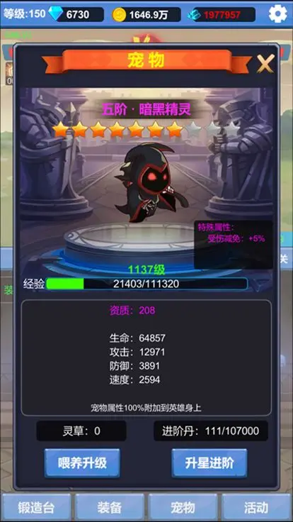 挂机勇者不朽传说是一款采用二次元风格进行呈现的生存冒险游戏,玩家可以操作其中的角色在魔幻大陆中快速进行探索,完成其中的任务还可以获取到丰富的奖励,帮助你对角色进行提升。游戏中具有多种不同样式的宠物可以获取到,支持根据需要在其中更好的进行建造,让你可以感受独特的游戏体验,其中多种不同的内容可以选择,玩家可以在这里开启独特的游戏体验,更好的进行挑战,在沙城中快速进行战斗。