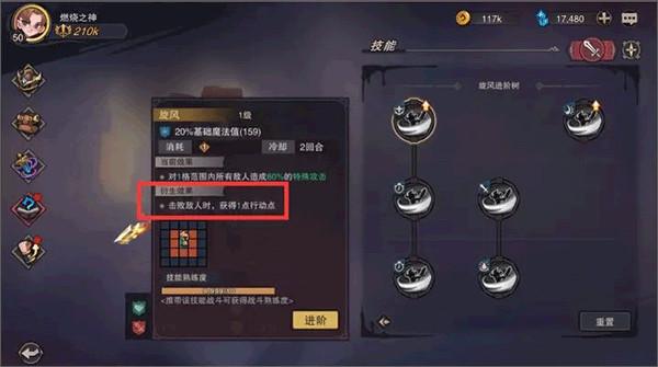 当熟练度达到后可以自由进阶技能,进阶后的技能将会增加衍生效果!