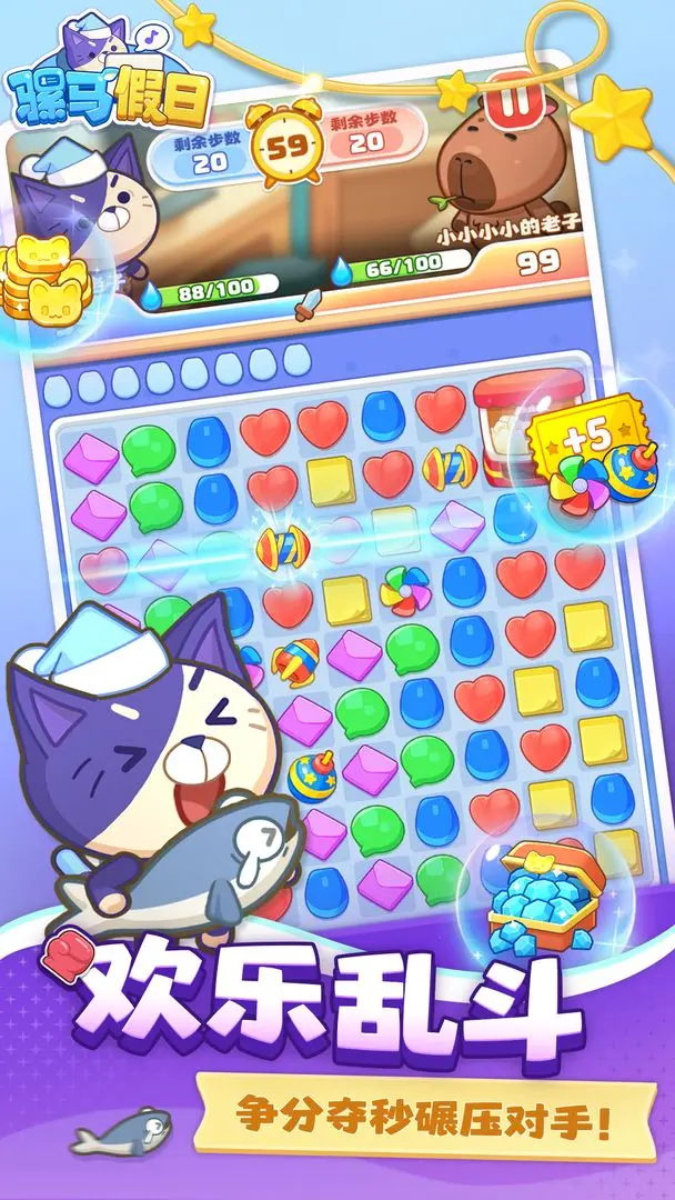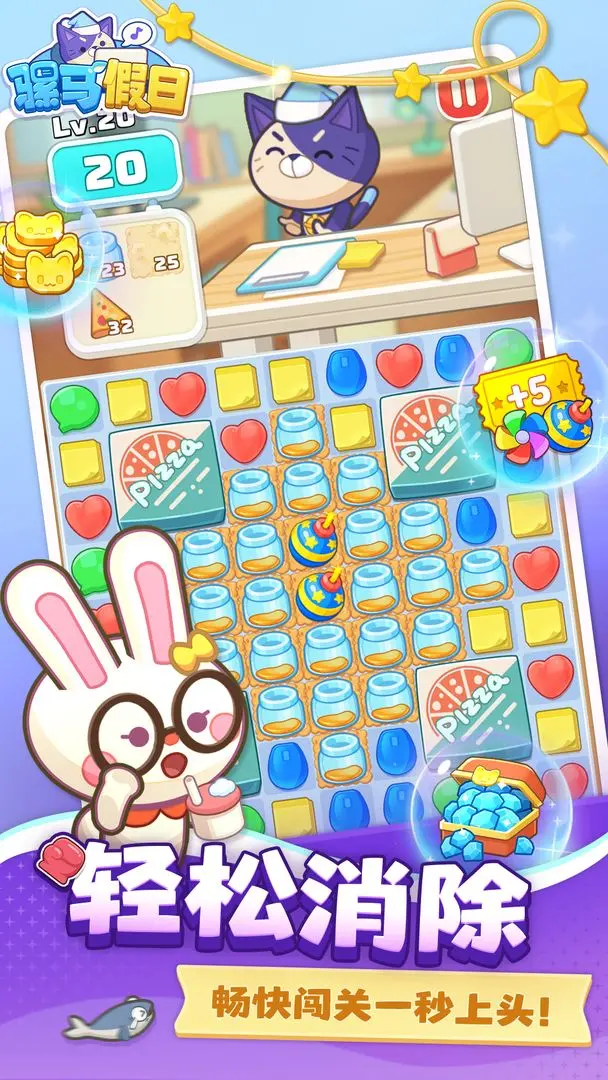 骡马假日是一款内容非常精彩有趣的消除类游戏,玩家可以通过点击在这里快速进行操作,获取到更高的积分,非常多种不同的角色可以获取到,他们性格不同具有的技能各有特色,可以帮助你更好的进行游戏,其中的剧情内容非常的精彩,在这里为你书写非常全面的打工人日常,增添了游戏中的娱乐性。在其中除了闯关的方式还有真人对抗,玩家可以和自己的朋友进行比拼,提升自己的排名,感受非常良好的游戏体验。