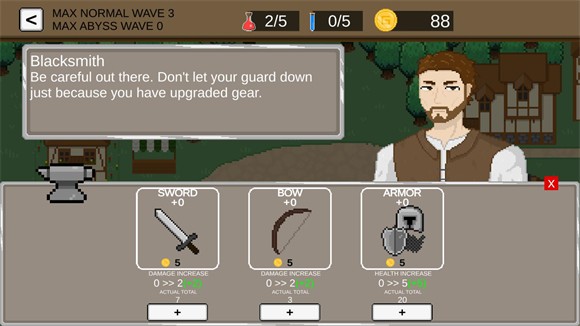 6、点击blacksmith可以强化主角的武器,能提升战斗力。