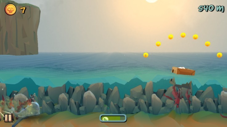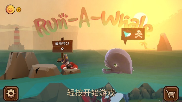 1、船长时而骑着鲸鱼在航船之间跳跃,获取金币;