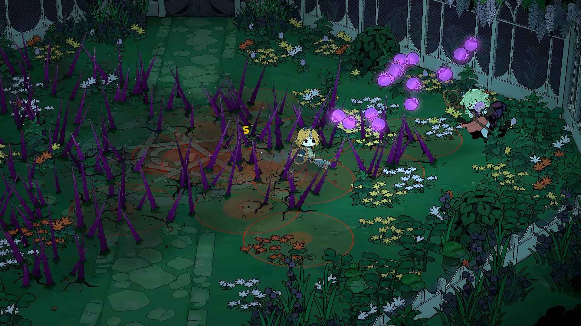 2、魔女的庭院画面看起来十分卡通,与阴暗的色调形成了鲜明的对比。
