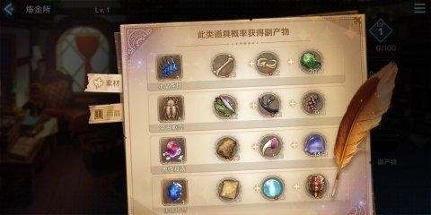 炼金所可以将素材互相组合合成新的素材,同时也可以将职业结晶以一定的比例互相转换。使用炼金所时可以选择一个角色进行协助,通过消耗角色的心情提升副产物的产出概率。