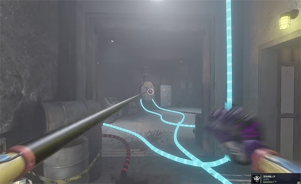 6、开门之后走里面还会有一个开关给他拉下来,往前走进去用蓝色手臂互动一下前面的开关,这里要触发三个开关才能有电流打通出口