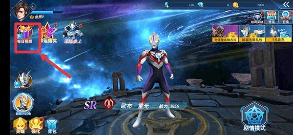 1、玩家可以在游戏首界面中,点击左上角的每日视频