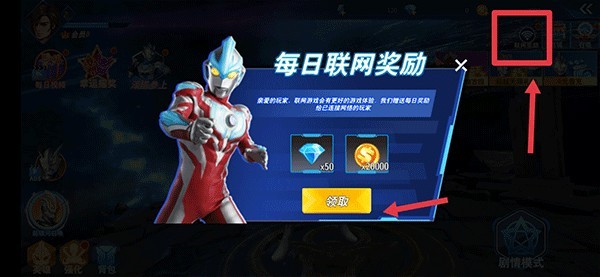 4、右上角有个联网奖励功能,点击后可每日领取一定数量的钻石和金币