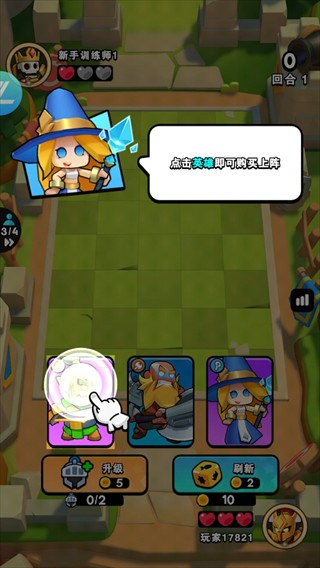 3、使用刷新功能,连续购买三位相同的英雄后即可合成升级至二星。