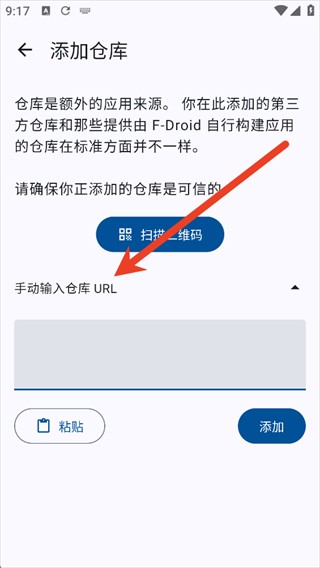 3、选择手动输入仓库URL,复制下方URL链接进入选择添加。