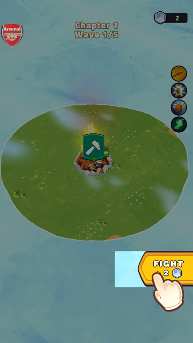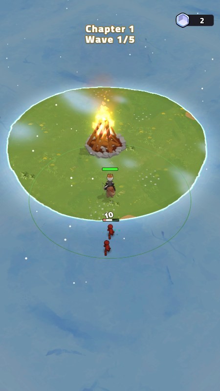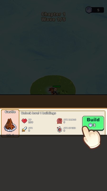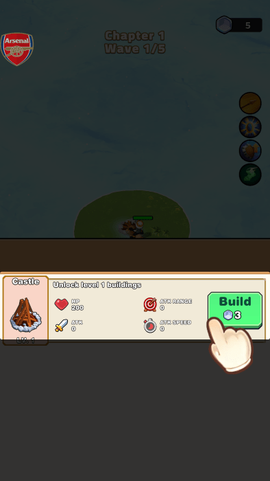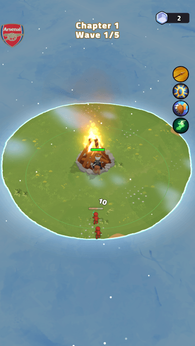 开局就这么小的地盘,移动到篝火旁建造升级。