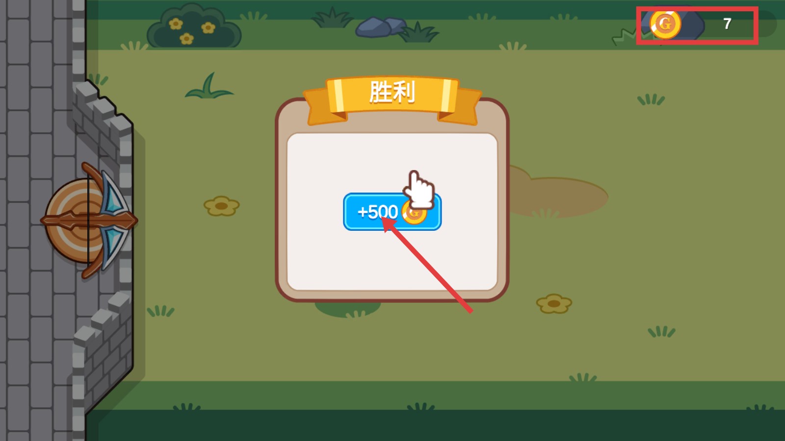 4、通关【关卡-2】后获得【+500】金币奖励,积累资源用于后续弩伤害等能力的升级。
