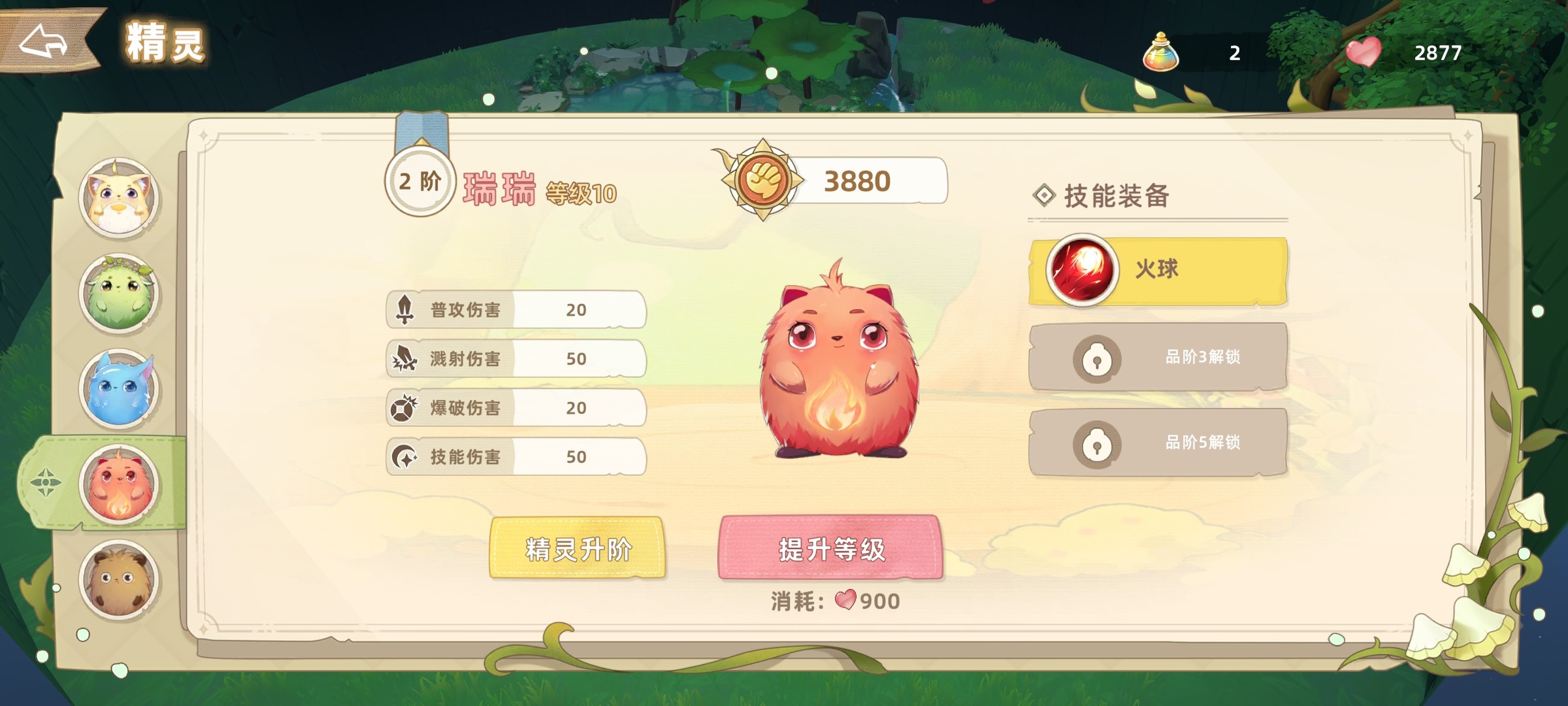 不同的精灵习得技能不同,可参考技能说明的左上角标注,尽快熟悉装备技能的效果能让你在棋盘上消除事半功倍。在精灵秘境中,点亮泡泡树,可以快速获得更强大的精灵技能,首次通关部分守护关卡也可以获得精灵技能哦~