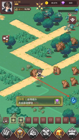2、点击图示位置的按钮可以开启自动战斗;