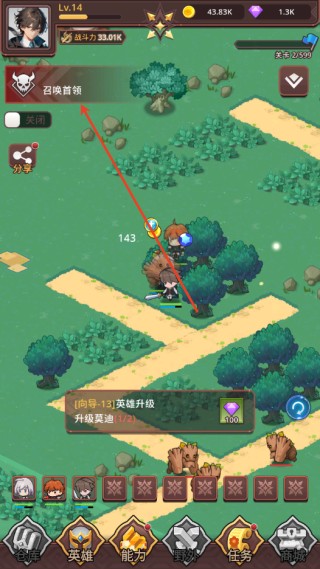 3、当清理完一波小怪之后,点击左上角的“召唤首领”;