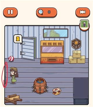 1、先去桌子上把剑和蓝色珠子拿了,然后走到盾牌处把盾牌里的两把剑拿了,再走到橙黄色的机器前面,拿了蓝色珠子。把珠子投进四个口里(投123口可以得到剑,投4小丑会来),得到2把剑。