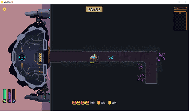 6、在这,小人可以点击鼠标左键进行挖矿,鼠标右键则是吸收矿石;