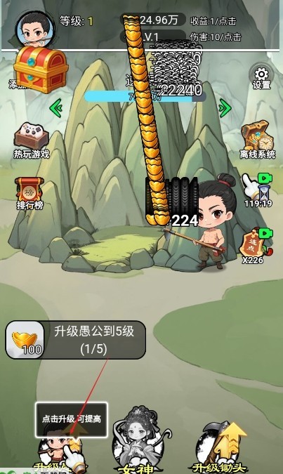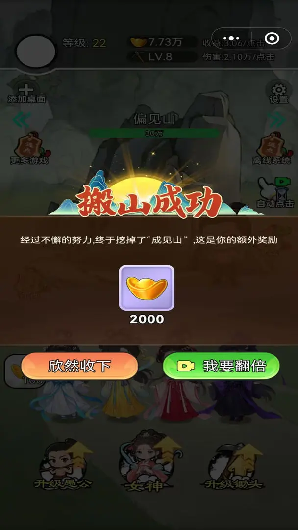 3、还可以免广告升级愚公,等级越高愚公挖掘的效率越高