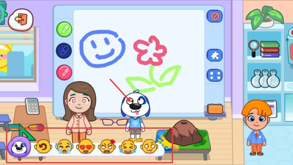 2、进入学校场景后,利用场景内的道具进行互动和创作,体验游戏玩法。
