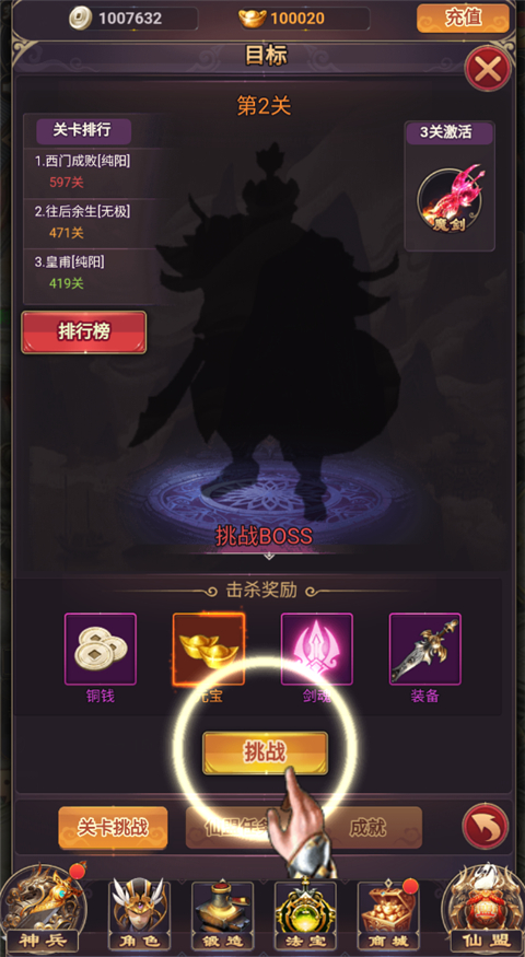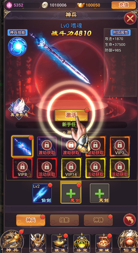 1、上线前往神兵中激活仙剑