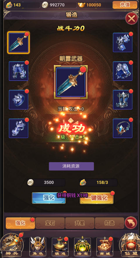 7、同时还可以进行装备强化来提升战斗力