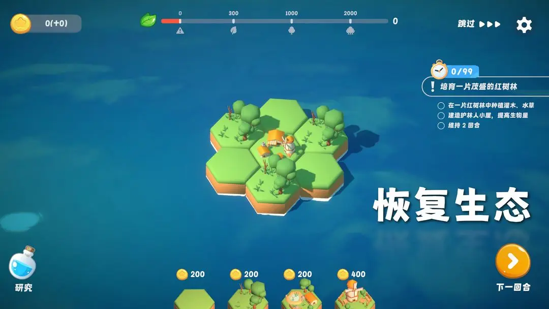 1、通过完成特定任务来恢复受损的红树林区域,每一片区域的修复都对应着不同的环境挑战与目标设定。