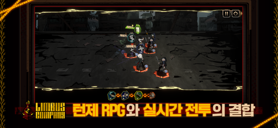 先介绍一下界面,为了方便你们理解,我会将边狱巴士公司的系统带入图书馆进行讲解。下面的这个界面,你们可以理解为所有角色的行动槽和卡池,开场的时候只有5条技能栏,每条技能栏下方都有一个角色的头像,随着战斗程度的变化,目前每个人最多拥有3条技能栏,这个竖条技能栏其实就是角色的速度。