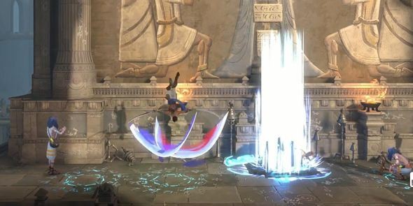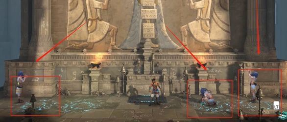 4、玩家看向地面,可以看到四个小型的符文法阵,其中三个符文法阵上面都有人。