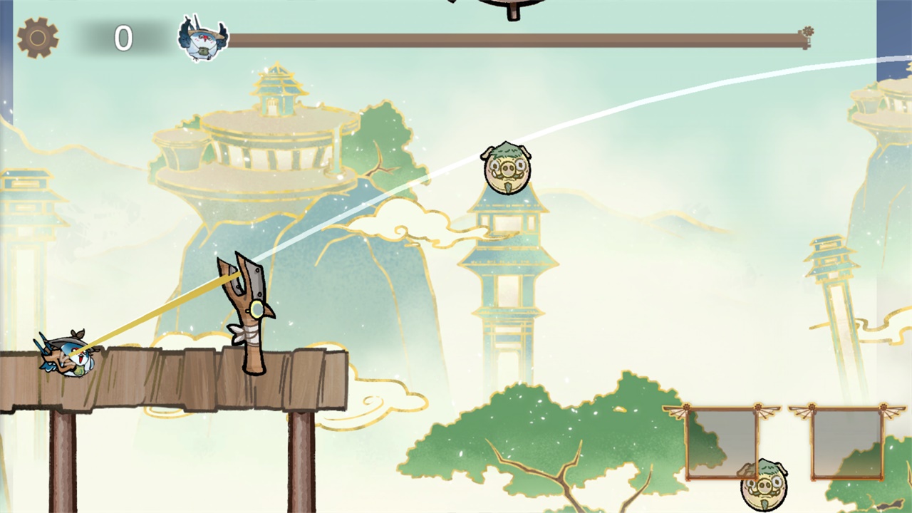游戏中采用比较真实的物理引擎进行呈现,玩家需要运用智慧找准反射的角度,操作自己的小鸟消灭其中的猪头。场景整体采用古风形式呈现,不同的元素进行融合,还有多种不同的任务可以挑战,完成任务可以获取到丰富的奖励。
