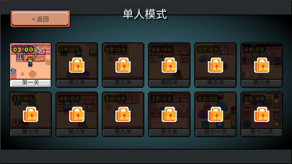 2、单人模式一共12关,需要一关一关解锁;