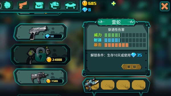 待购买新武器后,正好有个无尽模式,这样可以快速刷些金币,土豪在这个时候建议购买少量金币来升级新买的枪支,这样在前期无尽模式能刷取更多的金币,让游戏进度和爽快感快速增加。