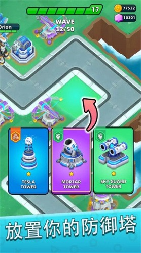 1、对基地的防御路线进行规划,合理布置各种防御塔,构建一张固若金汤的战斗网。