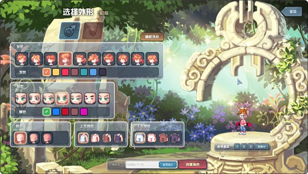 3、点击左右箭头,选择合适的造型和性别,确认后就可以开始体验游戏啦!