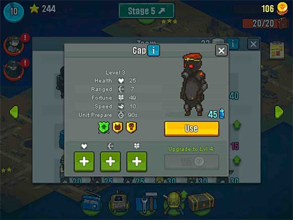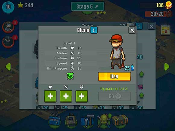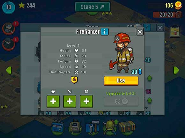 3、不同兵种都有不同的属性以及战斗方式,你还可以对其进行升级强化,增加战斗力,打造一支强大的幸存者小队。