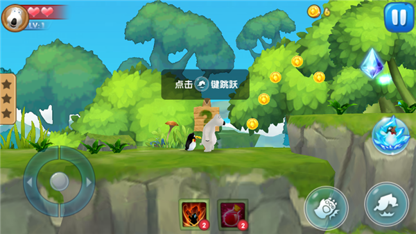倒霉熊奇幻大冒险正版是一款卡通的益智闯关游戏。玩家作为倒霉熊不料被岛上的野人偷走了背包,找回自己被野人偷走的背包,屏幕右下方分别是攻击对于游戏操作而言,闯关时要越过障碍物,准备好要加入这场充满趣味的搞笑之旅。在追回自己背包的过程中战胜小妖怪和奇异的Boss,还设置了大量的关卡,能够给你一种很可爱的感觉。真正考验自己的智慧,有提示功能但一天只能使用三次,可以帮助你解决一些不能通过的关卡。使用的时间越短最终得分就会越高快速转动脑袋瓜想出最简单的方法。