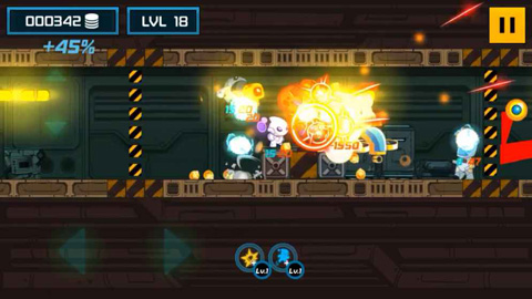2、带领一支可爱的外星小队,去解救那些被人类绑架的外星朋友,通关的目标是消灭所有敌人。