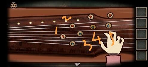 7、用钥匙打开红色柜子,获得?琴弦2。把琴弦放在古琴上修好古琴。在夫人桌上放上《琴谱》拼好残页。