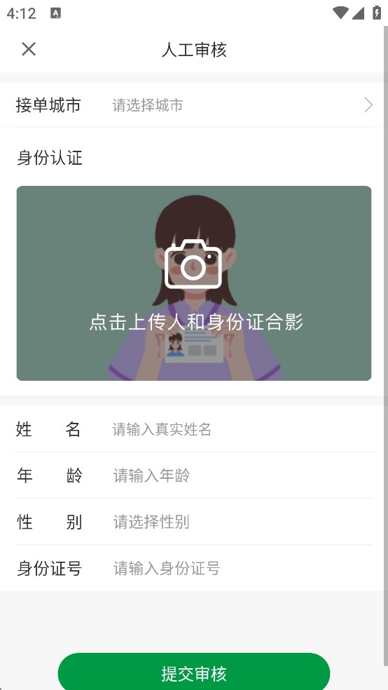 2、选择【接单城市】,上传身份证信息,然后点击提交
