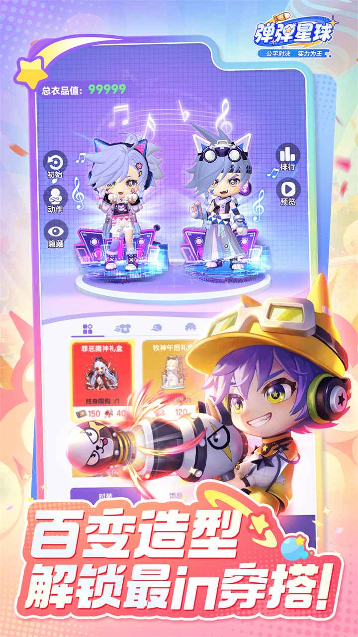 海量时装随心搭配,打造专属于你的个性形象。无论是酷炫未来风、可爱动物装,还是潮流街头风,你都能在这里找到属于你的风格,成为全场最靓的弹射达人!