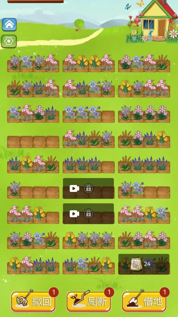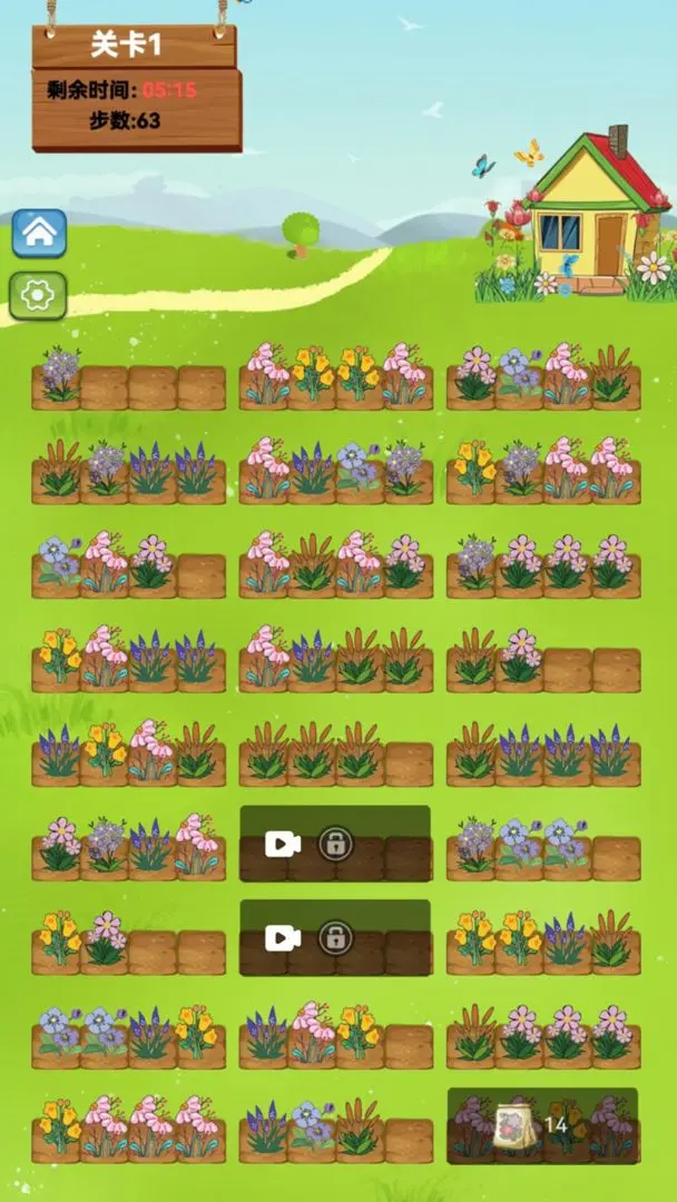 1、以花卉元素为核心主题,玩家通过连接相同类型的花朵进行匹配操作,完成关卡目标。