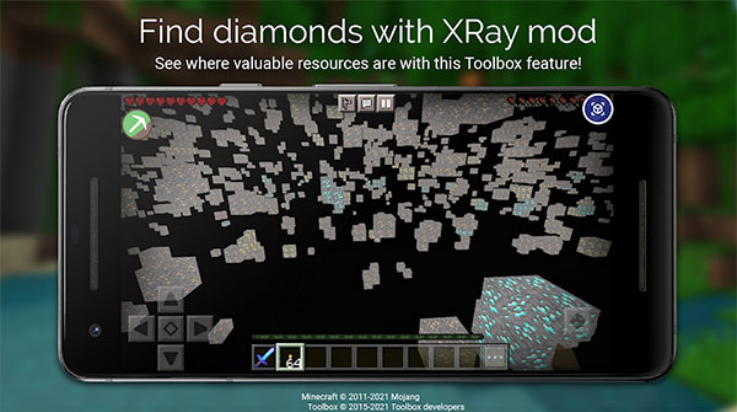 3、开启方块透视功能,所有地下矿脉一目了然,再也不用担心找不到钻石矿了。