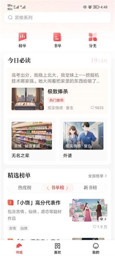 1、下载进入软件就能看到排版简洁清晰的主界面,主题可以选择男频、女频或是已出版的书籍,用户可按自己喜好选择
