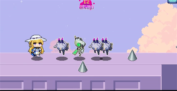 2、在跑酷路径中随机生成其他角色的像素化形象,玩家可通过击败此类单位获取附加道具,从而增强角色能力或提升得分效率。