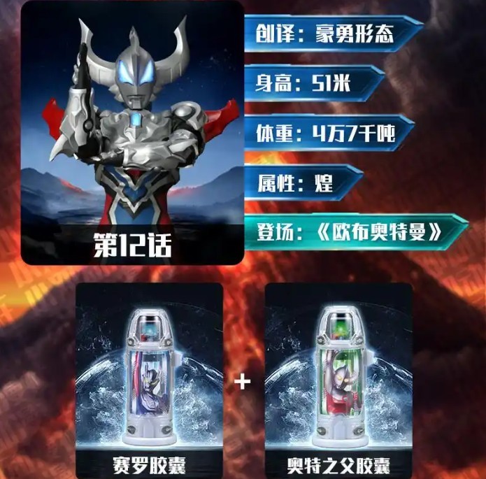 11、勇战形态=欧布重光形态胶囊+梦比优斯胶囊