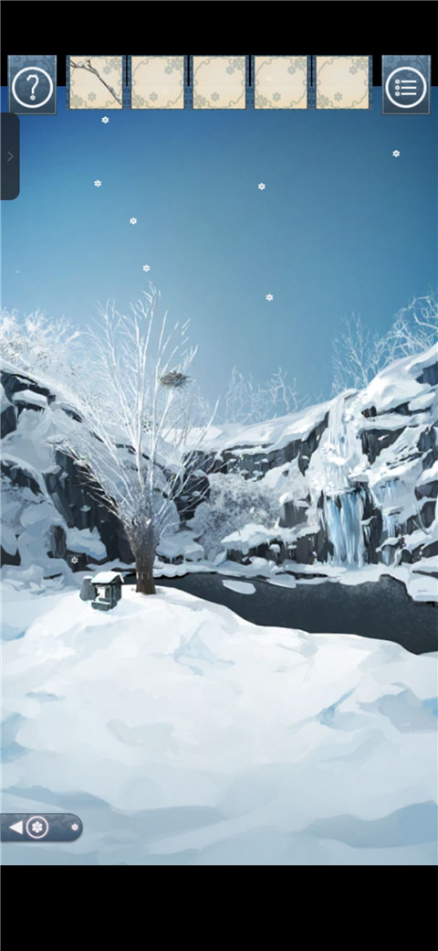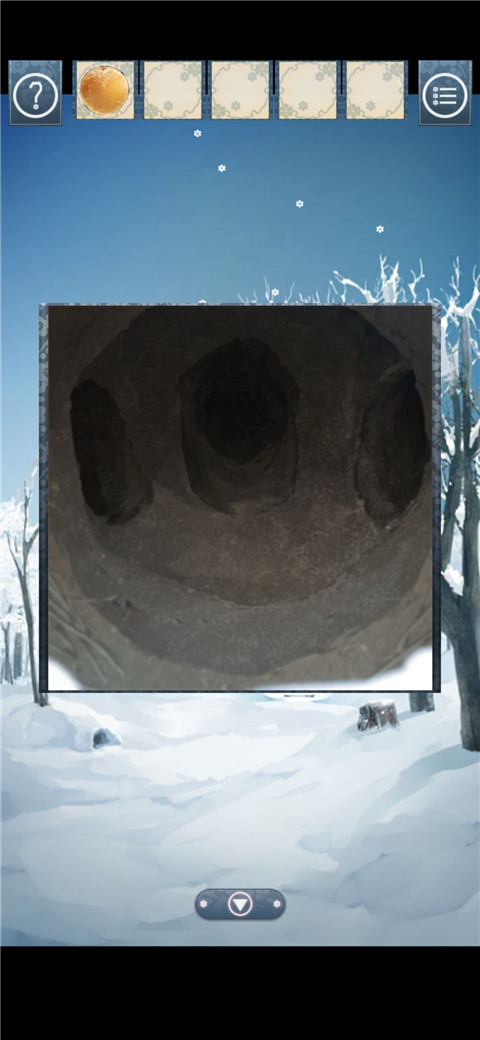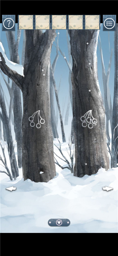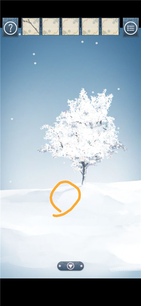 1、剧情ing 开局发现地上和树上都有黄色的东西,捡起来地上发现是果实(图片黄色区域),树上的就是我们需要的叶子,但是够不到,这时候点旁边蓝色区域的小房子,发现被雪盖住,要一层层的点掉